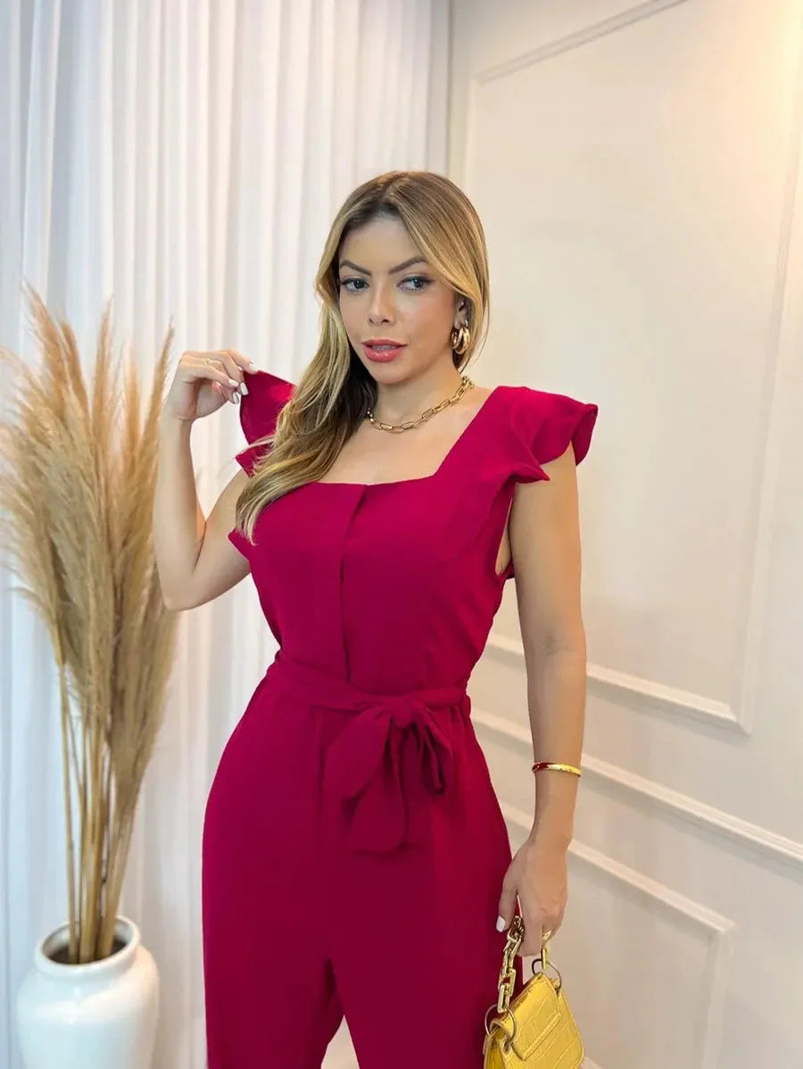 Apresentamos o Macacão Glória Longo com Amarração no Cós, confeccionado em tecido tipo crepe liso. Esta peça combina elegância e conforto, ideal para diversas ocasiões.