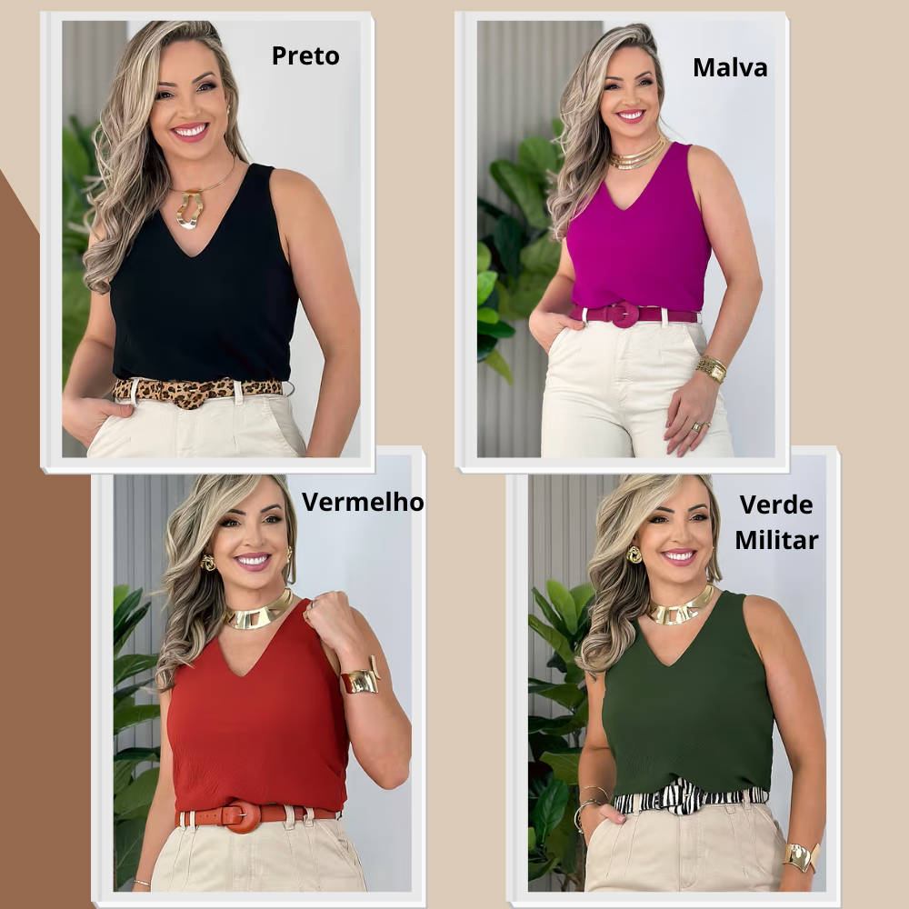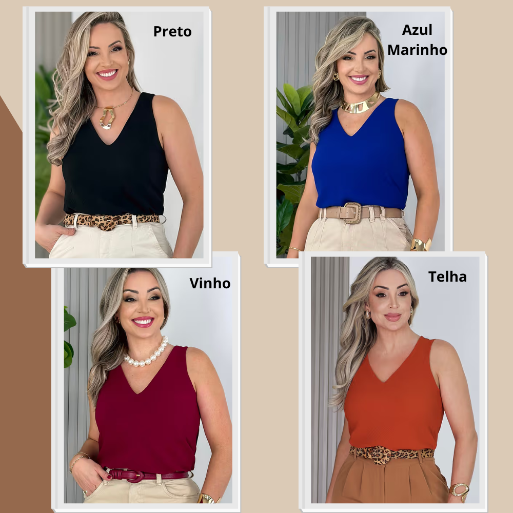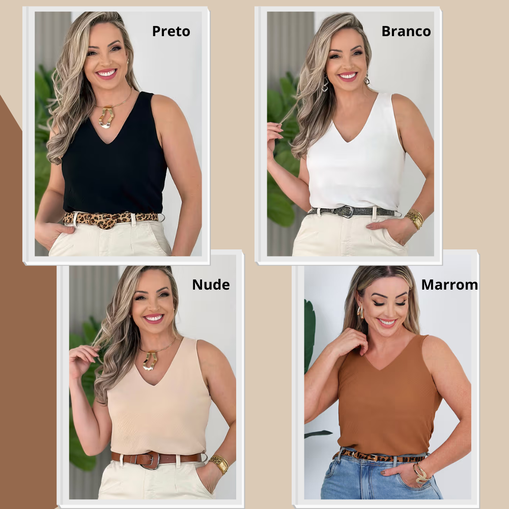 Kit 4 Regatas Femininas com Alça Larga Tecido Duna - Lyra